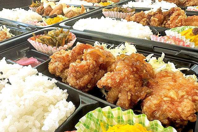からあげ弁当(町産ねぎ使用オリジナルソース)(味噌汁付)